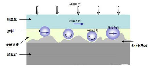 采用研磨拋光這種方法來對藍(lán)寶石表面拋光時,其機(jī)理分為三個過程: